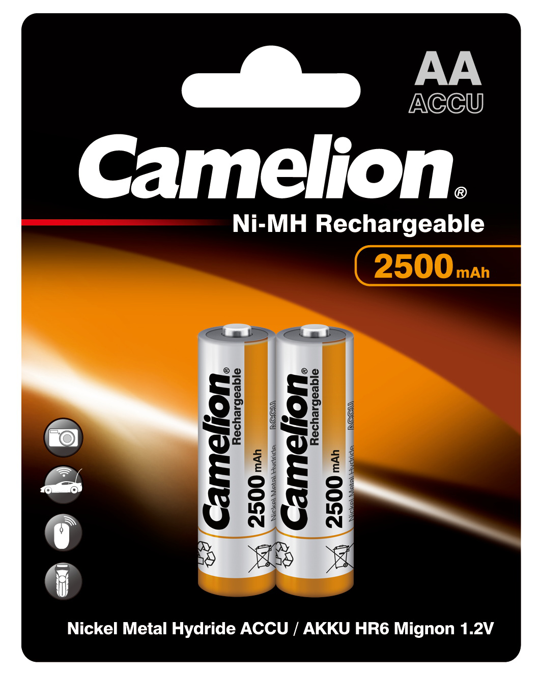 Аккумулятор AA Camelion R6 NI-MN 2500мА.ч BP-2 поставляется в блистерной упаковке, в которой содержатся два аккумулятора. Это удобно, так как вы можете использовать один аккумулятор, а другой оставить в резерве или использовать в другом устройстве.