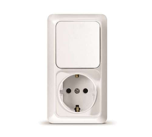 Электроустановочные изделия серии Олимп. Открытая установка. Корпус изделия изготовлен из негорючего пластика АВС. Срок службы не менее 5000 циклов
