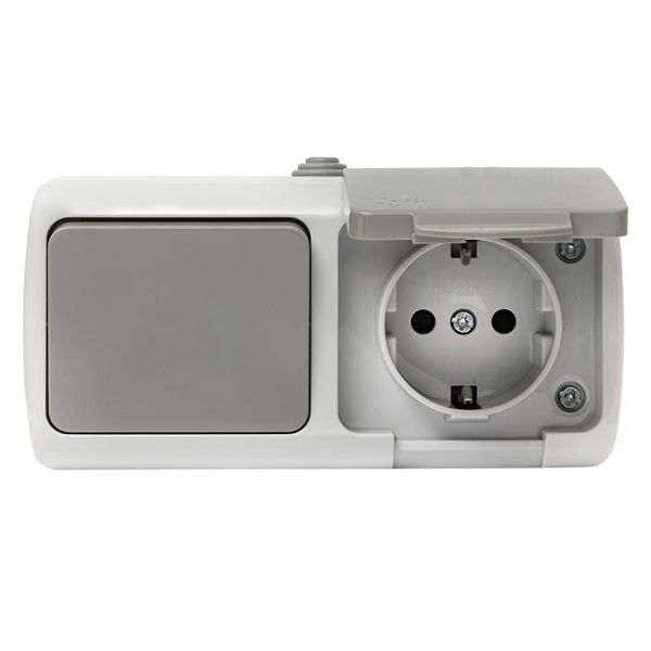 Блок из одноклавишного выключателя и розетки EKF серии Мурманск позволяет организовать электроснабжение в условиях высокой влажности и пыльных помещениях, на улице при условии установки под навесом. Ступенчатые герметичные вводы с двух сторон изделия обеспечивают надежную защиту, позволяя использовать устройство в агрессивных условиях.