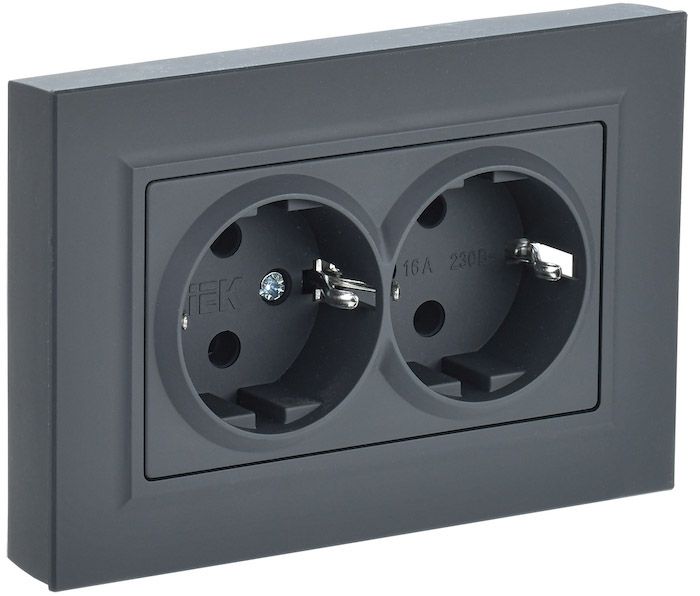В нашем магазине «Главэлектрика» в Ельце, вы можете приобрести товар: «BRITE Розетка 2-местная с заземлением с защитными шторками 16А в сборе РСш12-3-БрГ графит IEK» с доставкой по г. Елец.