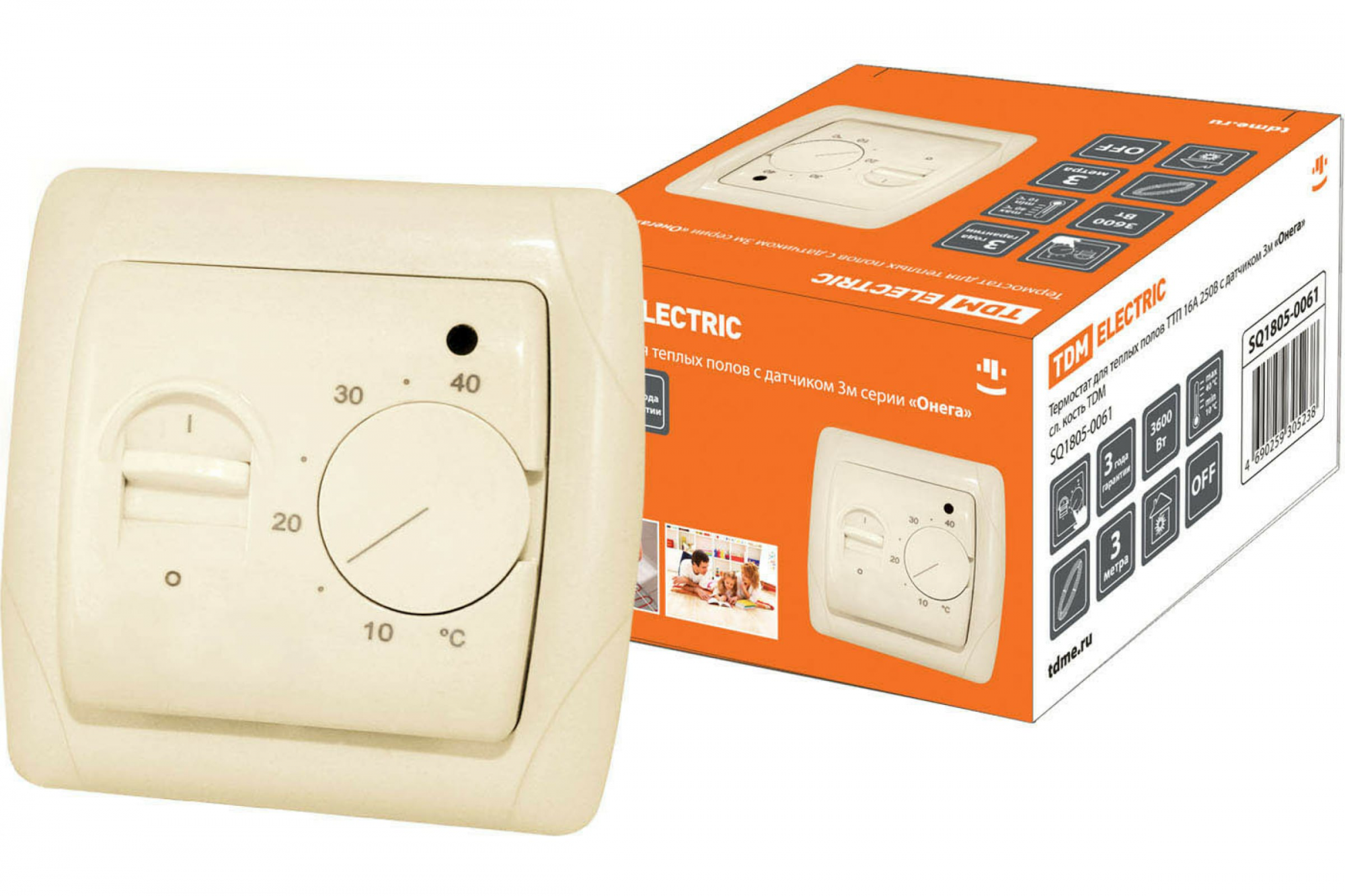 В нашем магазине «Главэлектрика» в Ельце, вы можете приобрести товар: «Термостат для теплых полов ТТП 16А 250В с датчиком 3м "Онега" сл. кость TDM» с доставкой по г. Елец.