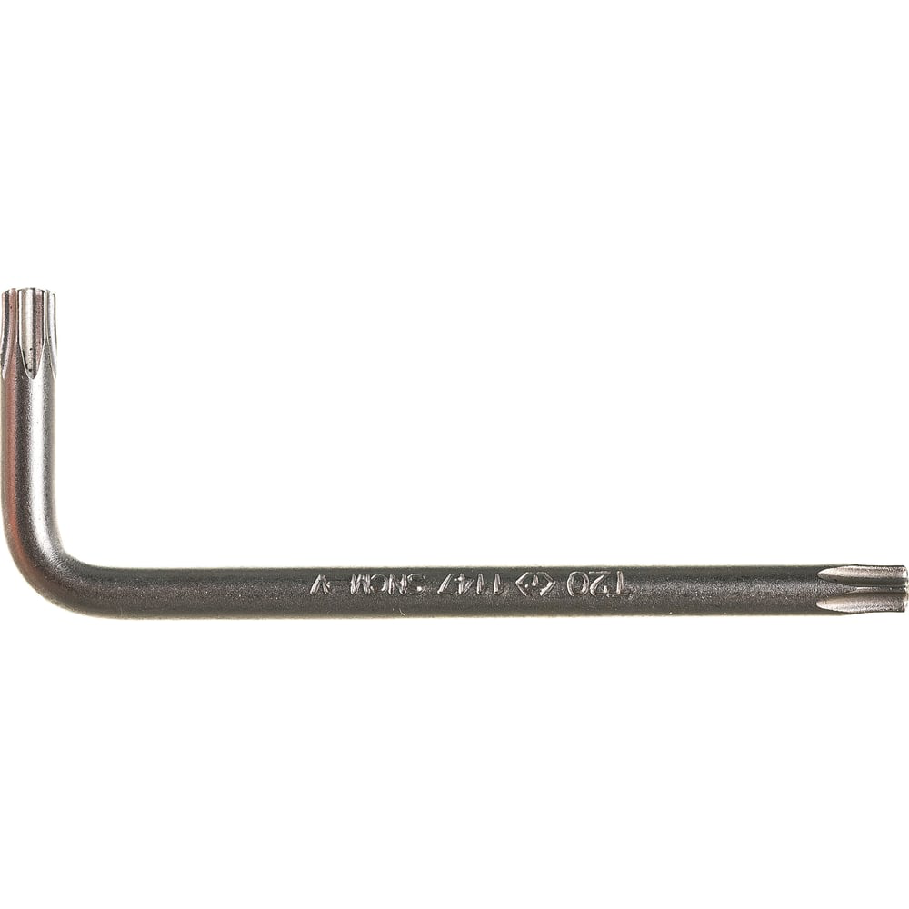 Г-образный ключ с отверстием KING TONY TORX, Т20 114720R применяется для работы с внутренним профилем TORX. Инструмент отлично подходит для монтажа и разборки крепёжных узлов устройств и агрегатов на станциях технического обслуживания и в автомастерских. Размерность - Т20. Размер короткой части, - 24 мм. Размер длиной части - 61,5 мм.