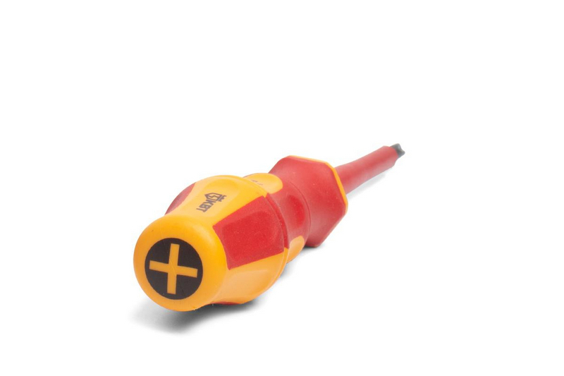 Отвертка диэлектрическая Профи PH/FL1x80 (КВТ) - это надежный инструмент для проведения работ под напряжением до 1000 В. Изготовлена из высококачественных материалов, что обеспечивает долгий срок службы. Рукоятка инструмента имеет специальное диэлектрическое покрытие, которое защищает пользователя от поражения электрическим током. Отвертка оснащена двумя типами наконечников: PH и FL, что позволяет использовать ее для различных видов работ. Удобная эргономичная рукоятка обеспечивает комфорт при работе. Отвертка диэлектрическая Профи PH/FL1x80 (КВТ) - незаменимый инструмент для профессионалов и любителей, занимающихся ремонтными работами в условиях повышенной опасности.