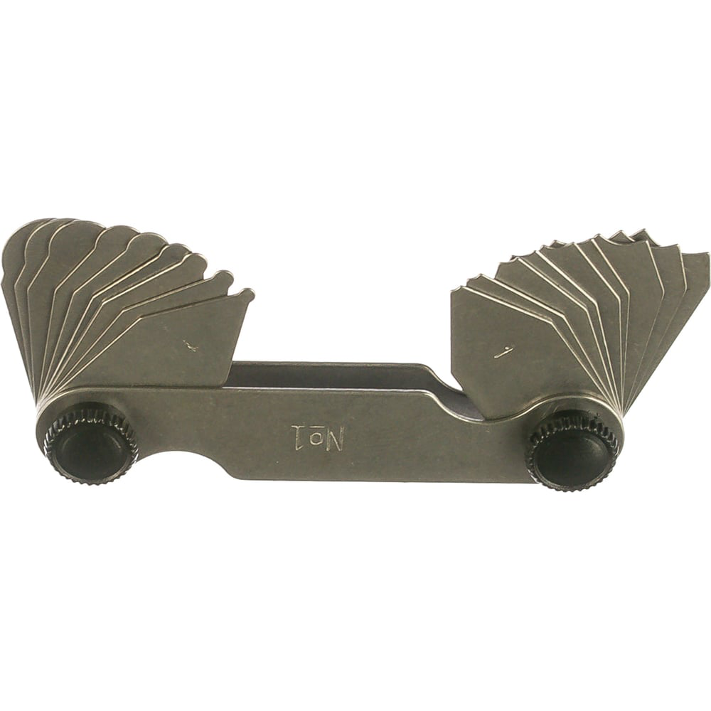 Радиусный шаблон Micron №1 МИК 46414 представляет собой инструмент, предназначенный для контроля радиусов выпуклых и вогнутых поверхностей. Помогает выявить износ оборудования. Шаблон позволяет осуществить измерение методом подбора подходящего щупа и прикладыванием к поверхности. Пластины выполнены из стали, имеют зубцы толщиной 1 мм. Пластины в обойме можно заменять.