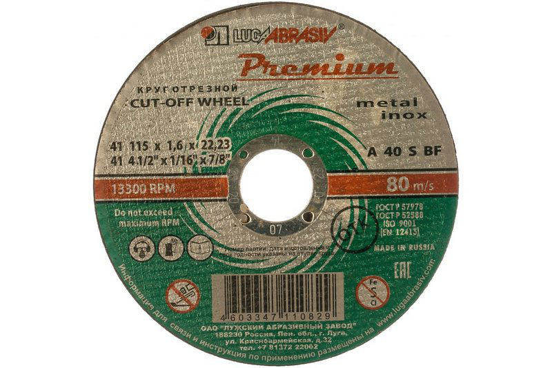В нашем магазине «Главэлектрика» в Ельце, вы можете приобрести товар: «Круг отрезной по металлу+нерж. 115 х 1,6 х 22 мм, ПРЕМИУМ (Луга)// Россия» с доставкой по г. Елец.
