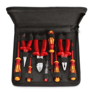Набор диэлектрических инструментов НИИ-19, 9 штук, представляет собой профессиональный набор инструментов, разработанный для работы с электрическими цепями и обеспечивающий безопасность при выполнении работ под напряжением. Включает в себя различные типы изоляционных отверток, плоскогубцы, кусачки и другие инструменты, необходимые для работы с электричеством. Каждый инструмент изготовлен из высококачественных материалов, обладает надежной изоляцией и соответствует всем необходимым стандартам безопасности. Набор идеально подходит как для профессиональных электриков, так и для любителей, занимающихся ремонтом и обслуживанием электрооборудования.