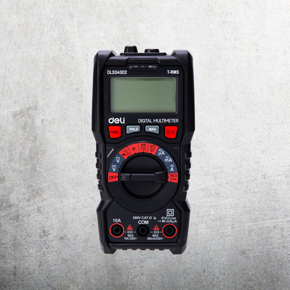 В нашем магазине «Главэлектрика» в Ельце, вы можете приобрести товар: «Универсальный цифровой мультиметр DELI DL334302 (напряжение 0,2-600В,AC/DC, ЖК-дисплей, 2х1,5В ААА)» с доставкой по г. Елец.