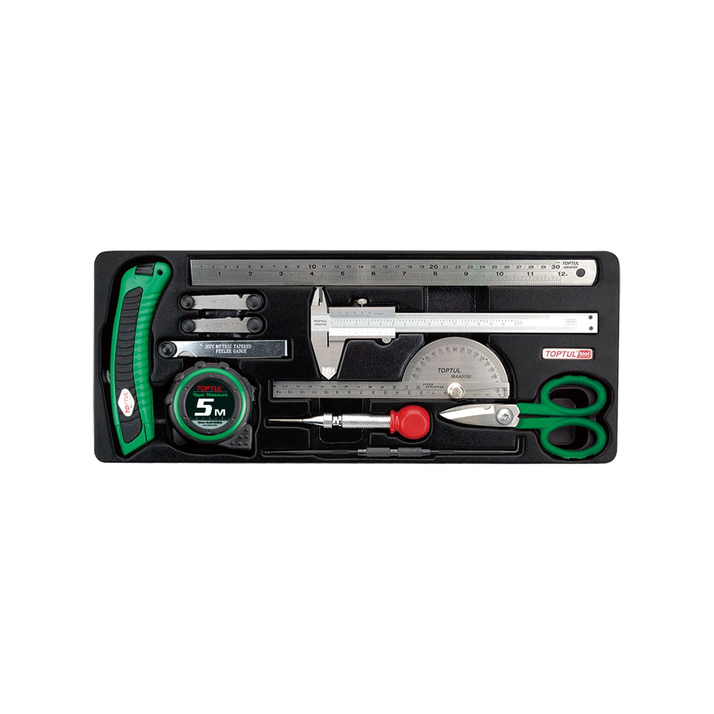 Набор инструментов для измерения, маркировки, резки, 11 предметов, в ложементе TOPTUL GCAT1101 имеет широкий спектр применения, подойдет любому мастеру. С помощью удобного ложемента инструмент можно разместить в любом ящике или полке тележки, и он будет всегда под рукой.