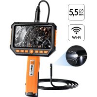 Промышленный видеоэндоскоп iCartool IC-V116B оснащен большим дисплеем, модулем Wi-Fi, микрофоном и съемным зондом 5.5 мм с двумя камерами. Экран с диагональю 5” и матрицей IPS имеет удобный интерфейс и воспроизводит изображения в разрешении HD. Боковая камера ориентирована на 90° относительно торцевой, что в общей сложности дает обзор в 150°. Боковая камера позволяет отказаться от использования эндоскопов c дорогостоящими управляемыми зондами. Переключение между камерами, а также использование дополнительных функций происходит с помощью кнопочной панели управления. Зонд эндоскопа полужесткий, с эффектом памяти формы, имеет длину 1 м. Предусмотрена возможность подбора и замены зонда для различных задач. Видеоэндоскоп позволяет производить аудиозапись и транслировать процесс съемки на устройства с ОС iOS/Android посредством Wi-Fi соединения. Регулируемая LED подсветка обеспечивает возможность детального осмотра объекта. Встроенный аккумулятор поддерживает работу до 5 часов без подзарядки. Особенности: Цветной IPS экран 5” с разрешением HD Разрешение фото и видео Full HD 2 камеры: фронтальная и боковая LED подсветка из 6 светодиодов с 3 режимами яркости Встроенный Wi-Fi модуль для одновременной демонстрации процесса съемки на мобильное устройство Встроенный микрофон и динамик Фонарик с настройкой угла освещения Поддержка карт памяти до 128 ГБ Литий-ионный аккумулятор 4400 мАч