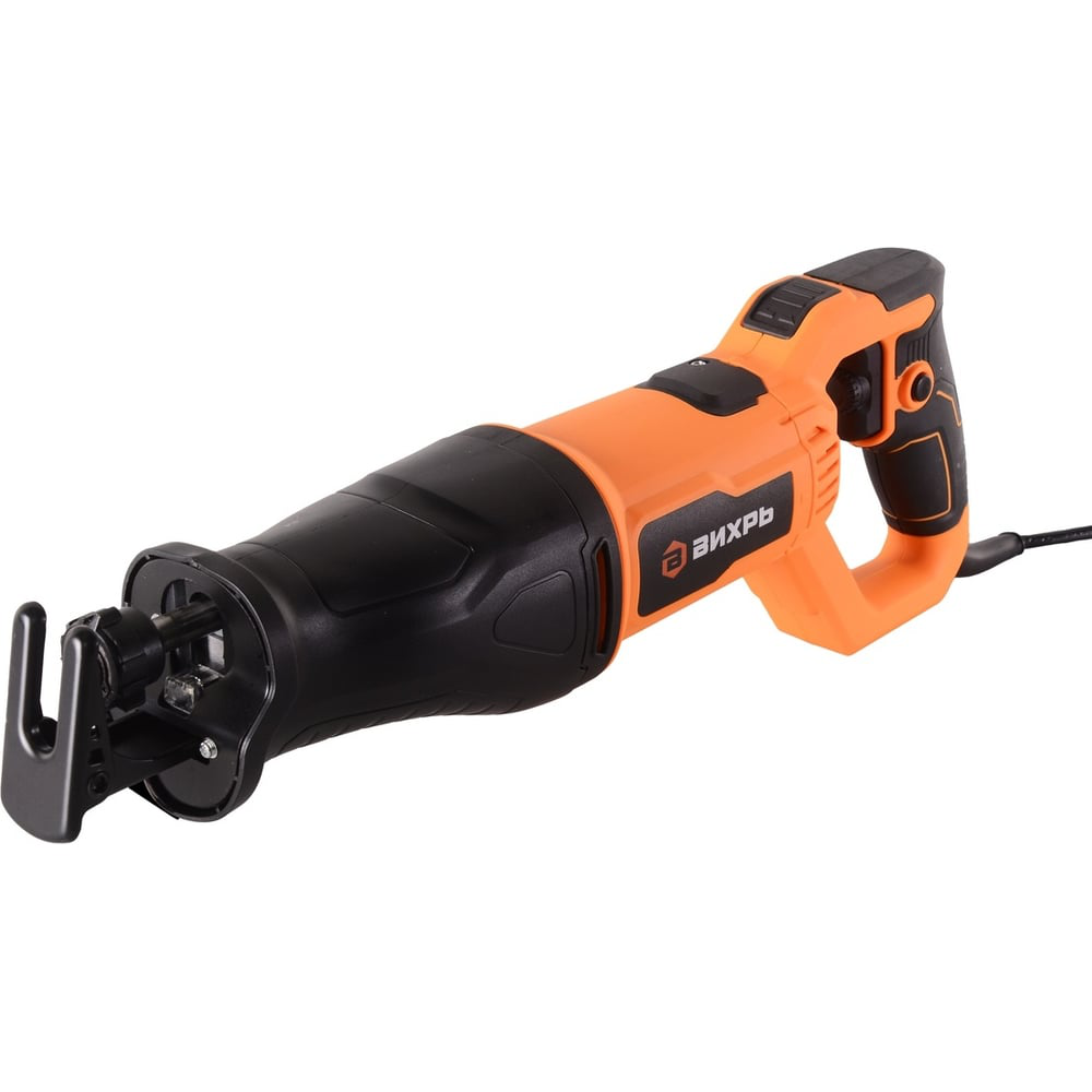 Сабельная пила Вихрь ПС-1300Э является электрическим аналогом ручной ножовки. Эффективно распиливает металлические и деревянные заготовки. Двигатель мощностью 1300 Вт отличается большим сроком службы, малым уровнем шума. Длина хода штока 30 мм обеспечивает высокую скорость работы и аккуратность среза. Частота хода штока регулируется в зависимости от твердости материала. Максимальное значение равно 2950 ход/мин. Для древесины глубина распила составляет 250 мм, на металлических заготовках рез равен 20 мм. Универсальный патрон для крепления полотна позволяет использовать оснастку разных производителей. Быстросъемный патрон не требует дополнительных инструментов. Специальный рычаг позволяет регулировать вынос упора. Сабельная пила Вихрь ПС-1300Э работает от однофазной электросети. Кабель длиной 2 м обеспечивает удобство подключения. Клавиша запуска расположена на рукоятке. Она фиксируется без необходимости постоянного удерживания. Дополнительная кнопка блокирует пусковой курок, препятствуя случайному включению. Нескользящее резиновое покрытие создает надежный хват. Светодиодная подсветка рабочей зоны позволяет выполнять работу высокой точности даже при слабом освещении. Вес модели 3,66 кг дает возможность оператору работать длительное время без перерывов. Пилка по дереву входит в комплектацию.