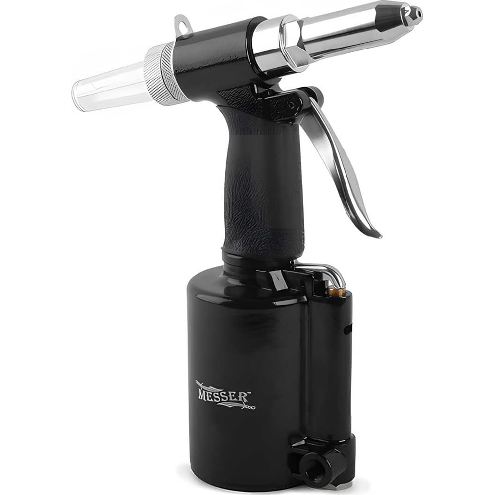 Пневматический вытяжной заклепочник MESSER AHR-101 используется для скрепления различных материалов между собой. Предназначен для работы с пластиковыми, кожаными, металлическими и другими материалами. Заклепочник рассчитан на работу с вытяжными заклепками диаметром 2.4, 3.2, 4.0 и 4.8 мм. Корпус инструмента выполнен из качественных материалов, что обеспечивает прочность и долгий срок службы. За удобство работы отвечают: прорезиненная рукоятка, прозрачный контейнер для сбора хвостовиков, скоба для подвешивания инструмента и большой пусковой крючок. Модель широко используется в различных отраслях строительства.