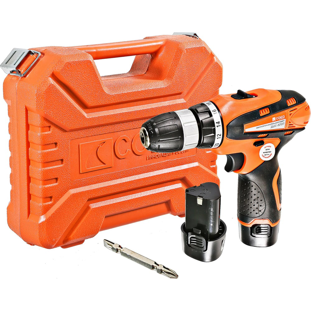 В нашем магазине «Главэлектрика» в Ельце, вы можете приобрести товар: «Аккумуляторная дрель-шуруповерт СОЮЗ ДШС-3212Л» с доставкой по г. Елец.