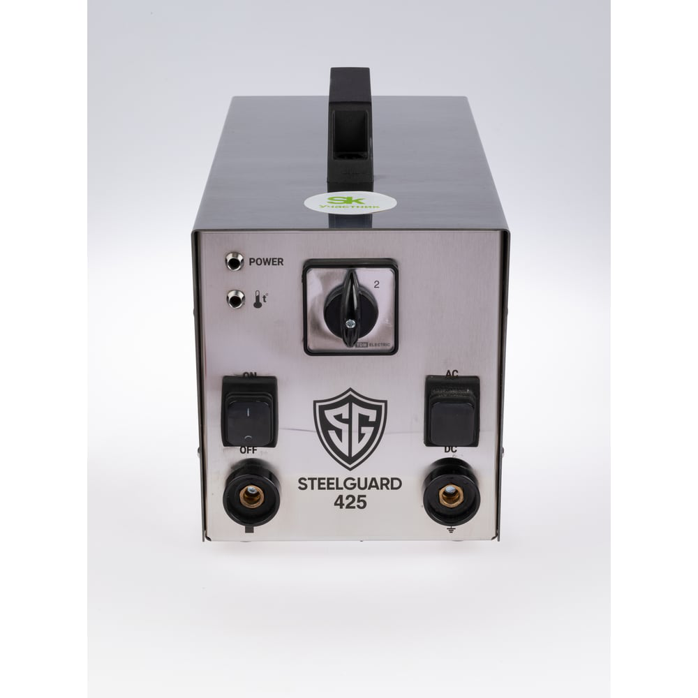Установка для очистки швов SteelGuard 425 MCSG425- это мощный и надежный аппарат для электрохимической очистки швов, пассивации и полировки околошовной зоны нержавеющей стали. Кроме того, с помощью данной установки вы можете наносить долговечную черную и белую маркировку на поверхность нержавеющей стали. Защищает от коррозии Процесс пассивации происходит параллельно процессу очистки Маркировка. Возможность брендирования своей продукции позволит вам защитить свои изделия от подделки Снижение финансовых затрат. Используя аппарат для очистки сварочных швов STEELGUARD 425, не придется тратить большие финансовые средства на промывку изделий и утилизацию токсичной воды, достаточно нанести щелочной нейтрализатор Снижение временных затрат. Значительное снижение временных затрат на технологический процесс очистки сварных швов в сравнении с использованием травильных паст, среднее время действия которых составляет 40-60 минут Снижение трудозатрат. Упрощенный процесс очистки швов установкой не требует вовлечения большого количества квалифицированных специалистов Скорость очистки сварных швов нержавеющей стали составляет 3-5 метров в минуту; Затраты на очистку 1 метра шва в зависимости от качества швов составляют 10-25 рублей (электролит + щетки/салфетки)