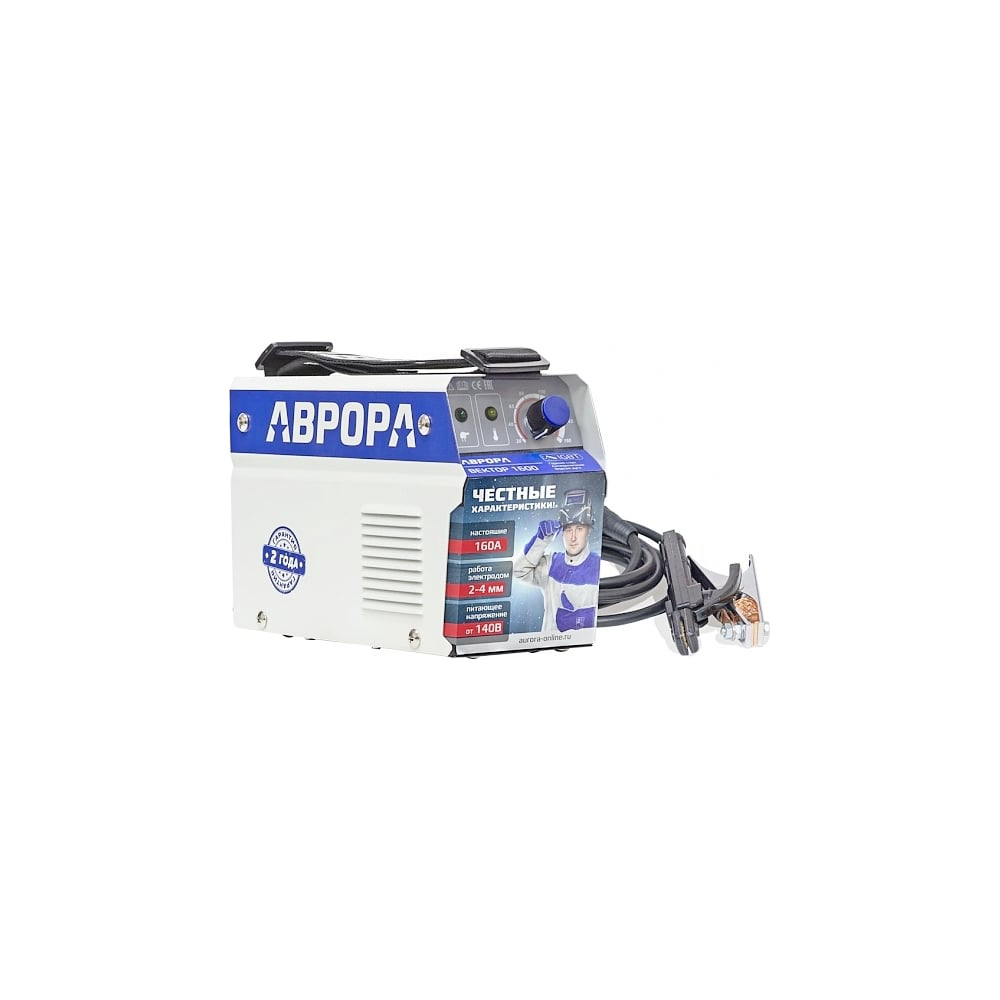 Сварочный инвертор АВРОРА Вектор 1600 используется для ручной дуговой сварки покрытым электродом (MMA). Данная модель подойдет для работы с углеродистой и нержавеющей сталью, для работы с различными сплавами, для проведения строительных, ремонтных и монтажных работ. Несмотря на небольшие габариты, обладает высокими рабочими характеристиками и обеспечивает сильную и стабильную дугу. Имеет очень высокий для данного класса аппаратов уровень рабочего цикла. Для аппарата доступны рутиловые, кислые и основные электроды диаметром от 1,6 до 4 мм. Возможна сварка горизонтальных и вертикальных швов. В отличие от аналогичных аппаратов конкурентов имеет 4 транзистора и 4 выходных диода, 2 датчика перегрева, что делает надёжность аппарата сопоставимой с профессиональным оборудованием. Модель адаптирована к российским условиям эксплуатации и сохраняет работоспособность даже при напряжении в сети до 160 Вольт. Вектор 1600 предназначен в первую очередь для бытового применения, и часто при сварочных задачах в быту возникает необходимость работать на малых токах, когда используются электроды 1,6мм. Инженерам компании «Аврора» удалось разработать инвертор, который уверенно ведёт себя, как на высоких, так и на малых токах, и можно с уверенностью сказать, что аппарат способен комфортно варить тонколистовой материал и профильную трубу с толщиной стенок от 1,5 мм. Модель комплектуется длинными (2+3 метра) и качественными кабелями сечением 25 мм2, что также выгодно отличает его от конкурентов.