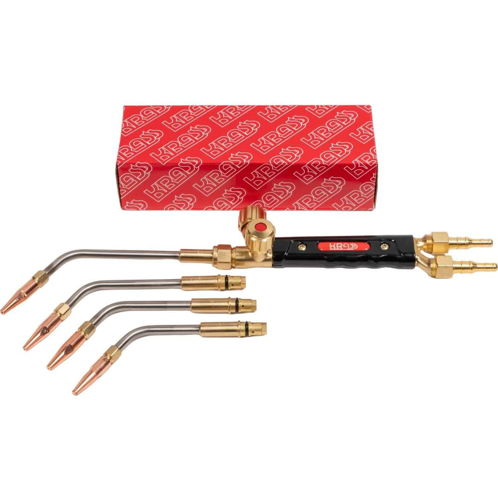 Ацетиленовая горелка KRASS Г2С-М тип МАЛЮТКА 2117532 газопламенная предназначена для ручных процессов газокислородной сварки, пайки, нагрева и других видов газопламенной обработки металлов. Основные параметры горелок соответствуют требованиям ГОСТ 1077-79.Металлическая ручка удобно лежит в руке.Регулирование мощности пламени производится вентилями.Толщина свариваемого металла 0 - 9 мм.