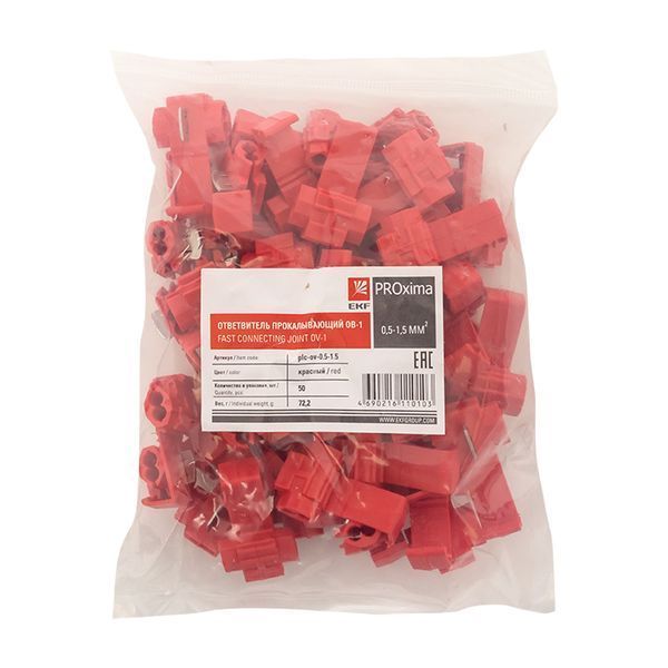 Ответвитель прокалывающий ОВ-1 0,5-1,5 мм2 красный 50шт. EKF PROxima - незаменимое устройство для прокладки электрических сетей и соединения проводов. Он предназначен для использования с проводами диаметром от 0,5 до 1,5 мм2 и обеспечивает прочное и надежное соединение.