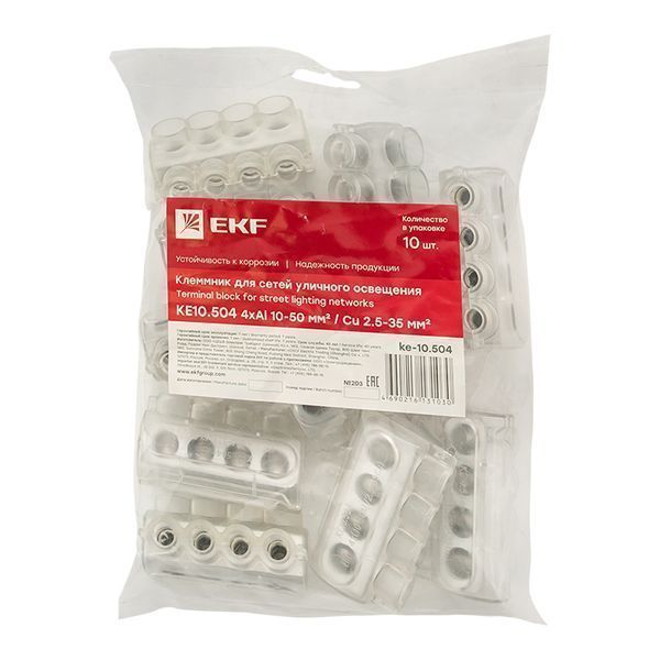 В нашем магазине «Главэлектрика» в Ельце, вы можете приобрести товар: «Клеммник для сетей уличного освещения KE10.504 Al 4x10-50 мм / Cu 2.5-35 мм EKF PROxima» с доставкой по г. Елец.