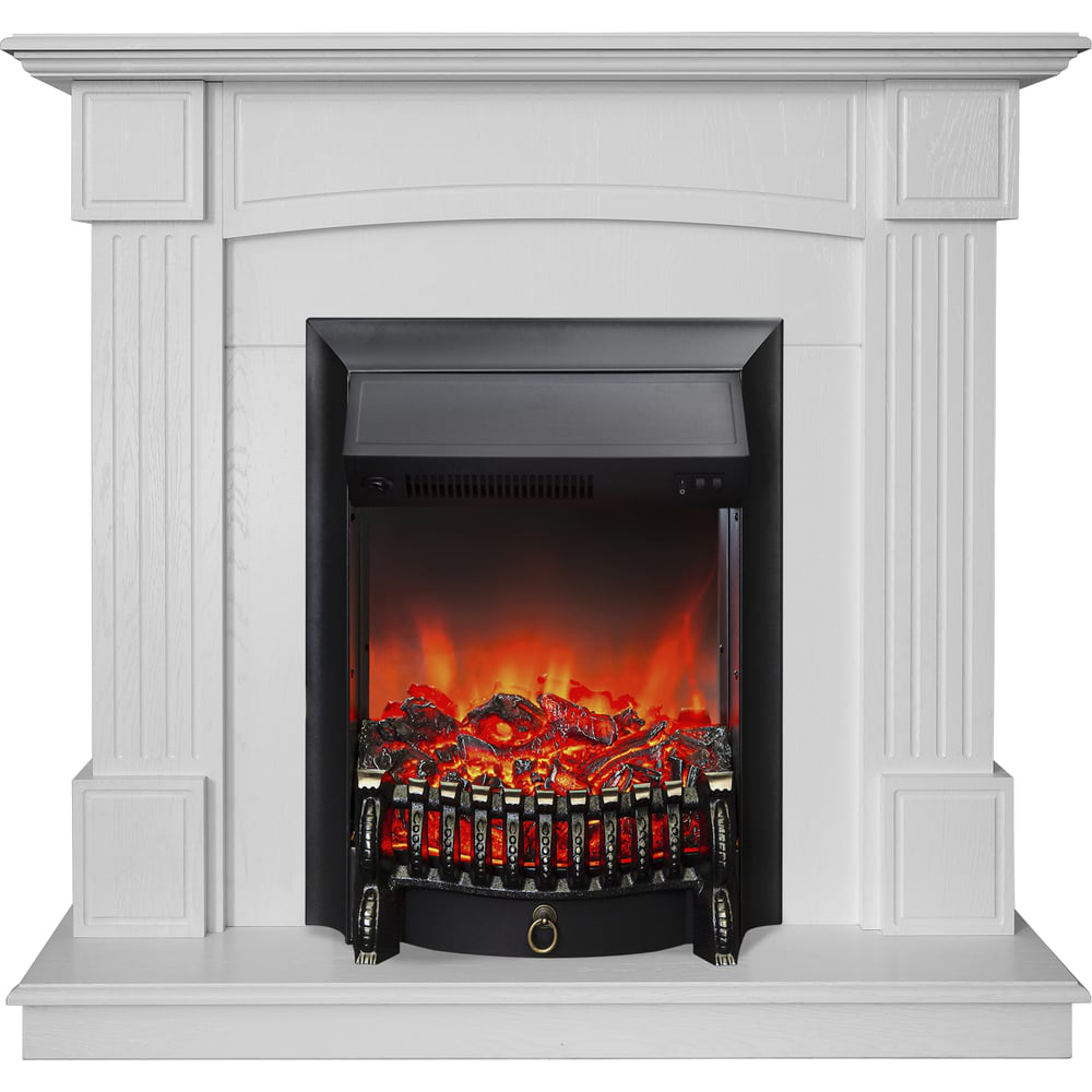 Каминокомплект RealFlame ANDREA STD/EUG WT FOBOS - выполнен в лаконичном дизайне, из современных, экологически чистых материалов. Подходит для установки в помещениях различного назначения. Создает комфорт и уют в любое время года.Выполнен из качественного МДФ и покрыт ПВХ плёнкой. Светлые оттенки расслабляют, из-за чего в комнате приятно находиться, хорошо отдыхать. Белый цвет портала легко впишется в любой интерьер, а компактный размер позволят гармонично разместить его в любом пространстве.Оригинальность дизайна очага достигается литой чугунной решеткой, имитирующей колосник и внешней рамкой с небольшим капором. Благодаря задней зеркальной стенке создается эффект объемного пламени и дополнительной игры света и тени.Звук потрескивающих дров и наличие обогрева усиливает сходство с настоящим очагом.Очаг с функцией обогрева. 2 уровня регулировка мощности обогрева. Мощность обогрева: 0,75/1,5 кВтЗащита от перегреваРегулировка яркости пламениЗвуковой эффектТип ламп: светодиоды