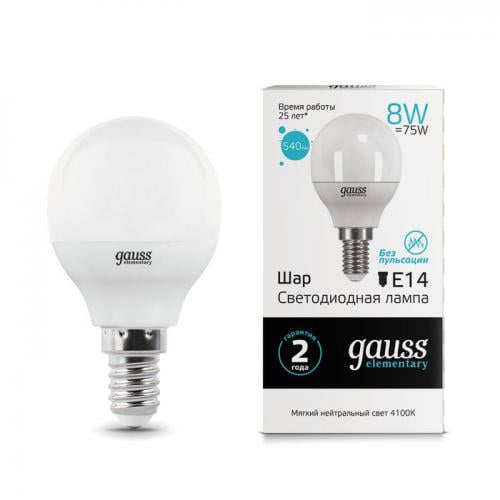 В нашем магазине «Главэлектрика» в Ельце, вы можете приобрести товар: «Gauss LED Elementary Globe 8W E14 4100K» с доставкой по г. Елец.