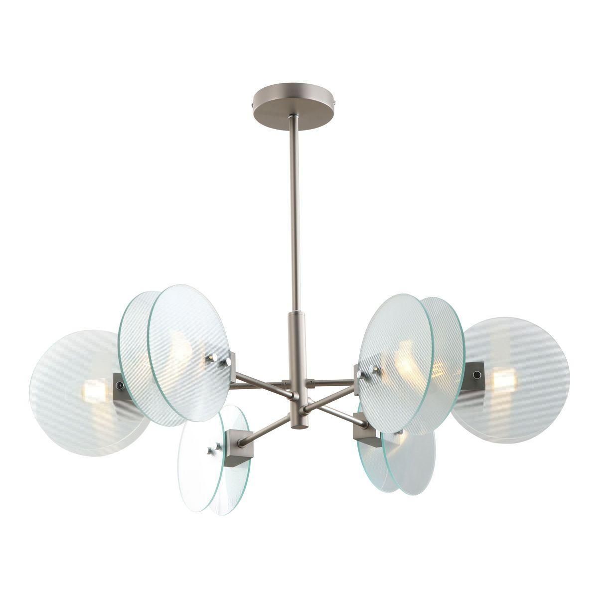 Расширенная гарантия на товар составляет 5 лет. поставщик рекомендует использовать лампы накаливания с цоколем E14 для освещения площади не указана м2. Подвесная люстра iLamp Panorama 15598-6 SN+CL в современном стиле используется в интерьере Для спальни с установкой На потолок.
