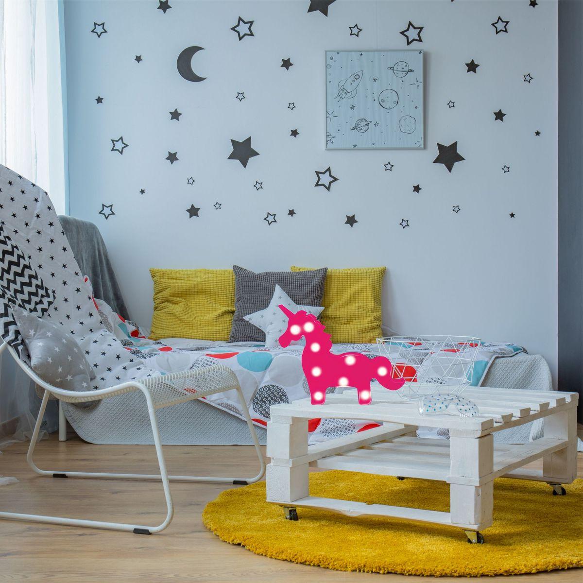 Расширенная гарантия на товар составляет 12 месяцев. поставщик рекомендует использовать лампы накаливания с цоколем LED для освещения площади не указана м2. Настольная лампа Apeyron Единорог 12-25 в современном стиле используется в интерьере Для детской с установкой На стол.