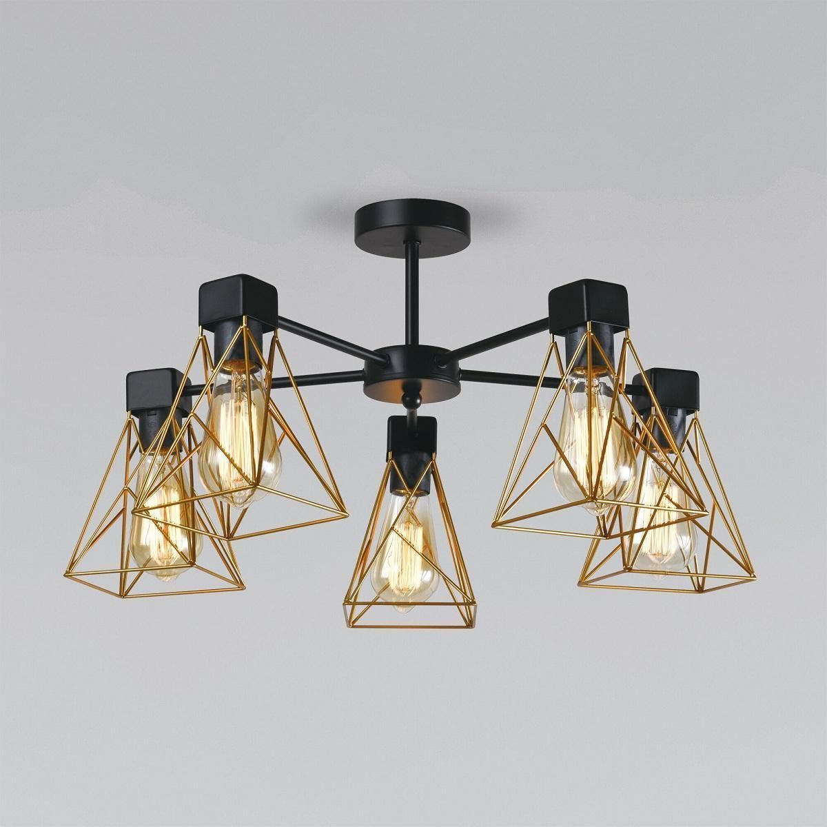 Расширенная гарантия на товар составляет 3 года. поставщик рекомендует использовать лампы накаливания с цоколем E27 для освещения площади 23 м2. Потолочная люстра Eurosvet Trappola 70107/5 черный/латунь в современном стиле используется в интерьере Для спальни с установкой На потолок.