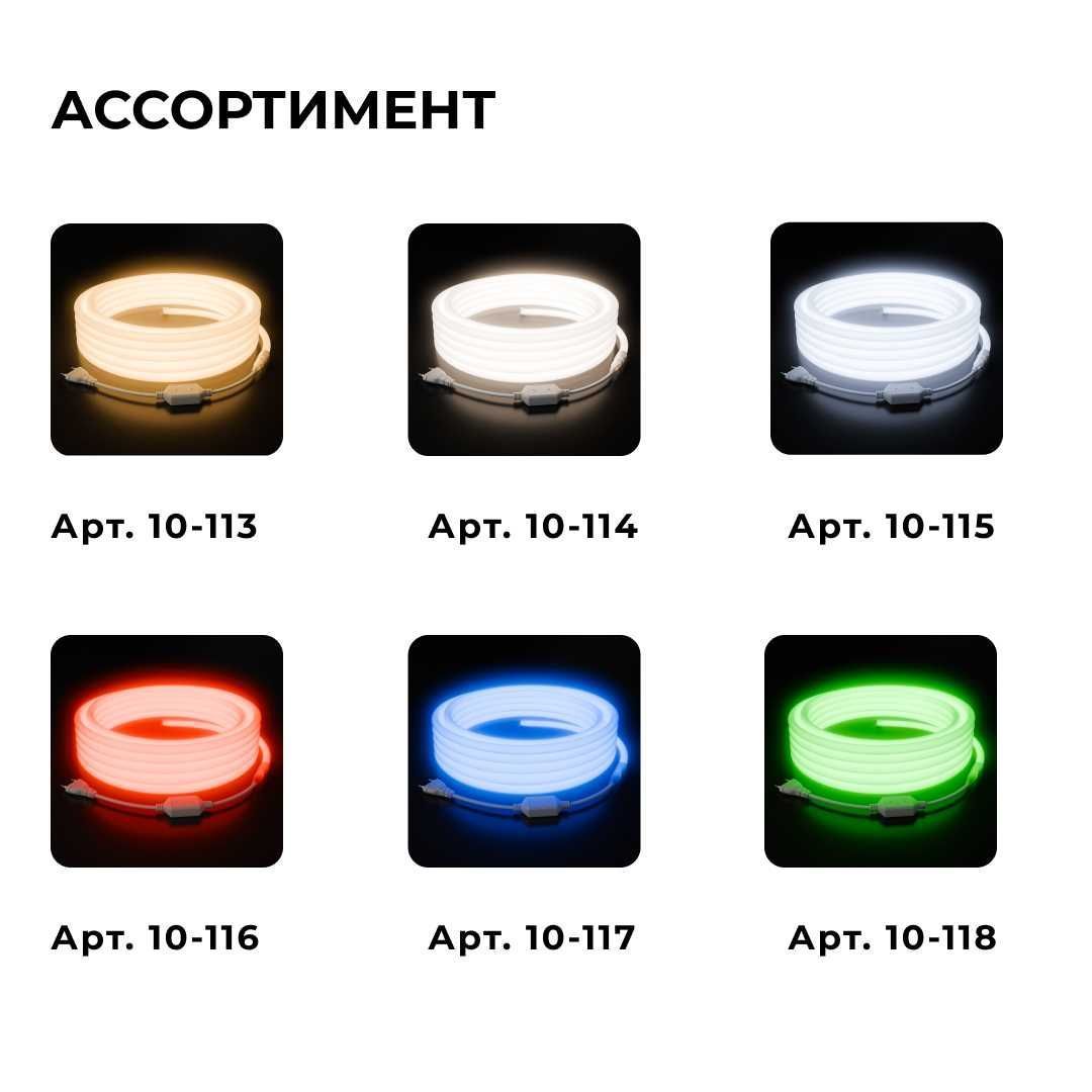 В нашем магазине «Главэлектрика» в Ельце, вы можете приобрести товар: «Комплект светодиодного НЕОНа Apeyron 220В, 6Вт/м, 300лм/м, 4000К, smd 2835, 144д/м, круглый, d=14, 10м, IP65 (сетевой шнур, заглушка, крепеж - 10шт) 1» с доставкой по г. Елец.