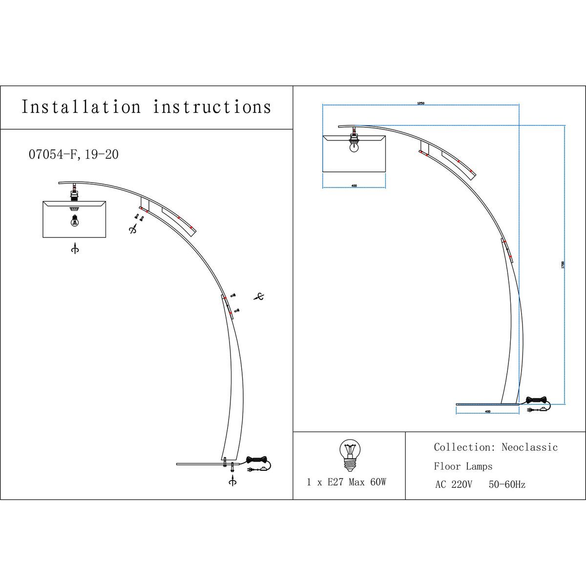 Расширенная гарантия на товар составляет 12 месяцев. поставщик рекомендует использовать лампы накаливания с цоколем E27 для освещения площади 2 м2. Торшер Kink Light Нестор 07054-F,19-20 в современном стиле используется в интерьере Для гостиной с установкой На пол.