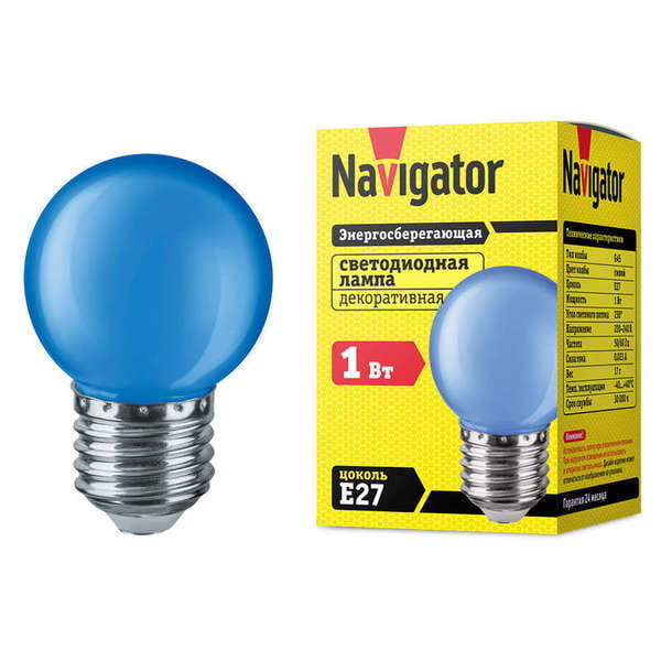 В нашем магазине «Главэлектрика» в Ельце, вы можете приобрести товар: «.Navigator NLL-G45-1-230-B-E27 син. 71 829 лампа НОВИНКА» с доставкой по г. Елец.