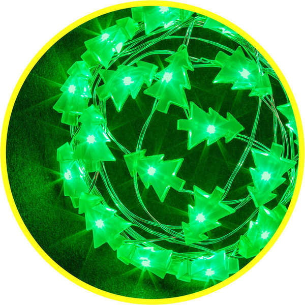 Гирлянда Navigator 14 050 NGF-DM002-20G-2AA-зеленые ёлочки тип гирлянды - фигурки зелёные ёлочки . материал фигурки - ПВХ. цвет свечения - зелёный. режим постоянного свечения. питание - 2 АА (в комплект не входят). общая длина - 2,3 м. длина провода до п