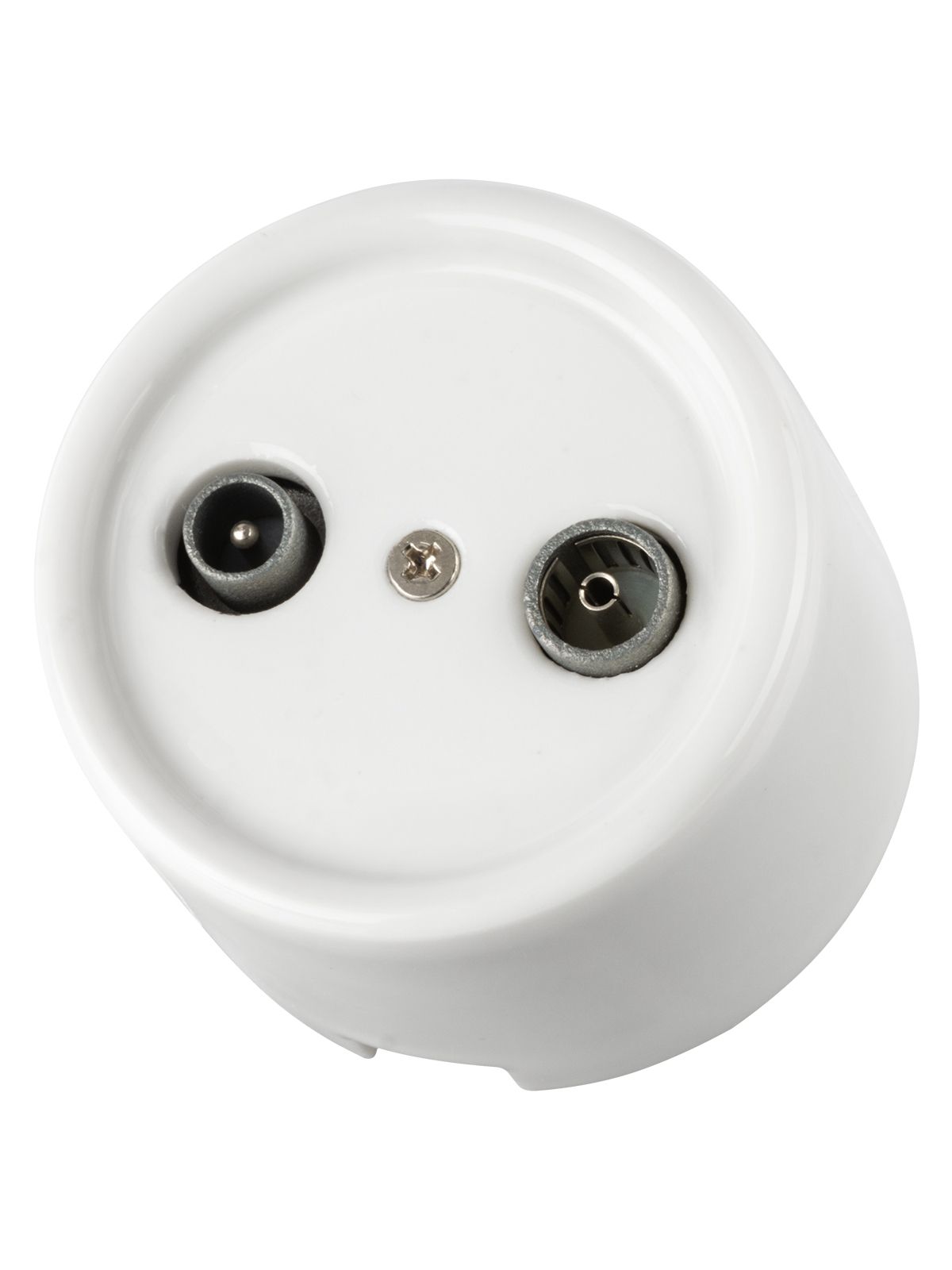 Розетка TV+R проходная белая «Болонь» TDM - это стильное и функциональное устройство для подключения телевизора и радио в вашем доме или офисе. Благодаря своему белому цвету и элегантному дизайну, эта розетка идеально впишется в интерьер любого помещения.Эта розетка имеет два отдельных выхода: один для подключения телевизионного кабеля, а другой для радиочастотного кабеля. Это позволяет удобно организовать подключение кабелей и получить отличное качество сигнала.