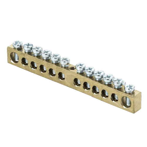 Шины предназначены для присоединения нулевых проводников (шина N) и заземления (шина PE). Шины выполнены из латуни и никелированной латуни. Нулевая шина устанавливается на изоляторе.