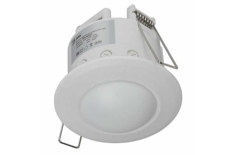 Название продукта: Датчик движения ЭРА MD 203 микроволновый встраиваемый 1200W угол 360гр., дальность 8м, IP20, 058660Описание продукта: