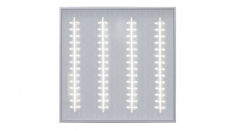 Размеры светильника составляют 595*595*38 мм, что позволяет легко интегрировать его в любой интерьер офисного помещения. Благодаря небольшой толщине, он не занимает много места и прекрасно подходит для потолочного монтажа.