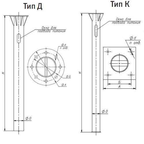 Закладные детали фундаментов (ЗДФ, ЗДТ) - применяются при установке опор и мачт освещения, а также флагштоков, молниеотводов и других высотных металлоконструкций. В зависимости от способа установки ЗДФ может быть фланцевого типа (Ф) или анкерного (А). Фланцевые ЗДФ представляют из себя металлическую трубу определенного диаметра и длины, на одном из конце которой приварен толстый стальной фланец в форме квадрата или окружности с монтажными отверстиями под болты, которыми впоследствии к ЗДФ будет