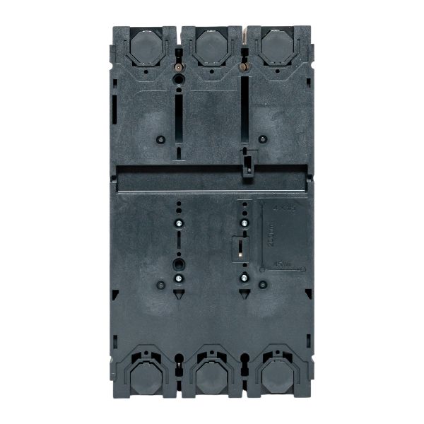 Выключатель ВА-99С выполнен в виде моноблока и состоит из основания и крышки с фальш-панелью, в которой имеется окно для рукоятки управления и толкатель кнопки «Тест» – для проверки механизма отключения выключателя.Основание выполнено из термостойкой пластмассы, не поддерживающей горение и являющейся несущей конструкцией для присоединительных зажимов, блок ротоактивных контактов с двумя дугогасительными камерами представляет собой жесткую сборку в отдельном корпусе, механизма управления, блока защиты от сверхтоков и перегрузки (расцепителя). Крышка закрывает все подвижные элементы механизма управления и внутренние токоведущие части.