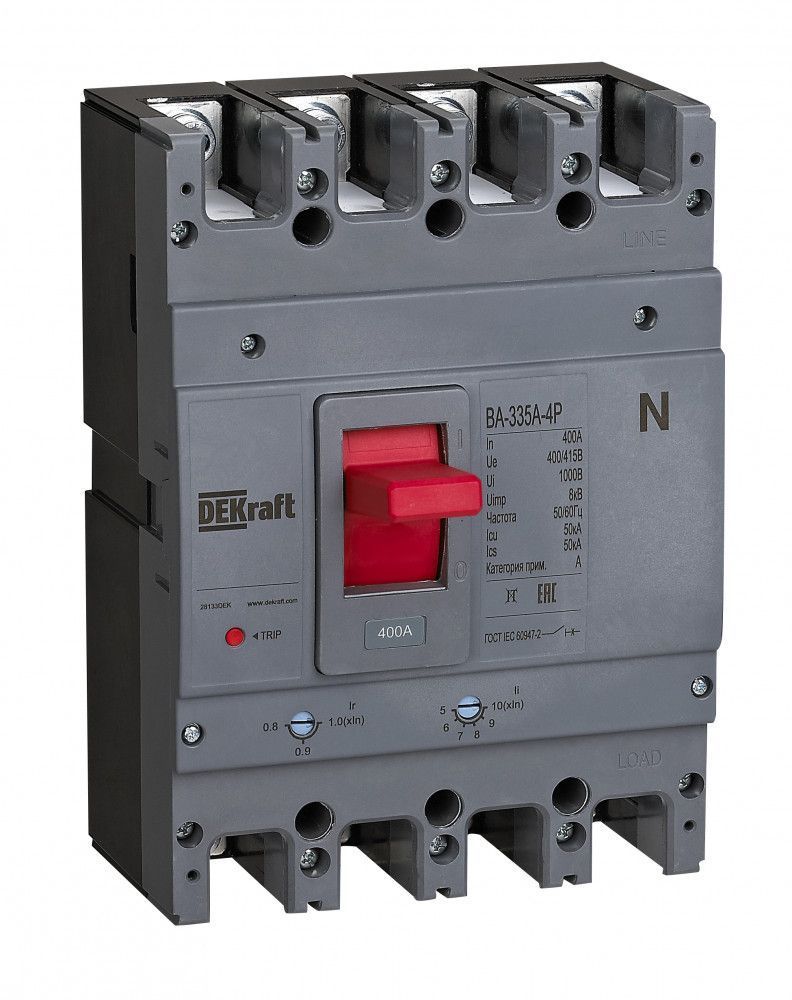 Продукт 28133DEK Силовой автоматический выключатель 4P 400A 50кА ВА-335А идеально подходит для использования в промышленных и коммерческих электрических системах, где требуется надежная защита и высокая энергетическая производительность.