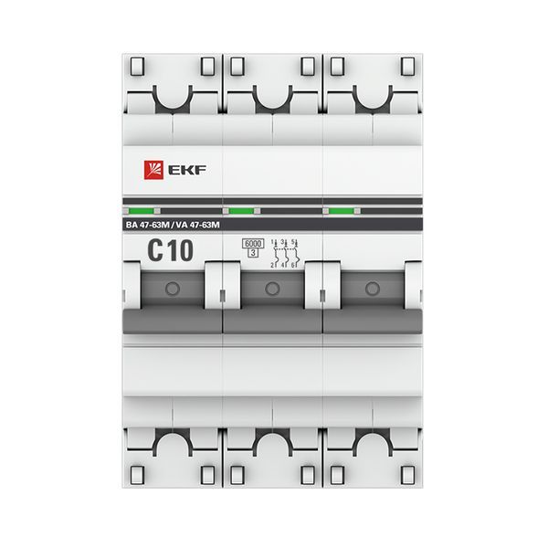 ОБНОВЛЕНИЕ ЛИНЕЙКИ PROXIMA Артикул аналог: M63MA6310C Автоматические выключатели ВА 47-63М без теплового расцепителя 6 кА EKF PROxima являются механическими коммутационными аппаратами и соответствуют ГОСТ Р 50345-2010. Особенностью данной серии выключателей является усовершенствованная конструкция. В выключателях имеются пластиковые крышки, закрывающие доступ к винтовому зажиму и служащие для опломбирования выключателей, что исключает несанкционированный доступ к проводникам. Корпус выключателей усилен дополнительными заклепками для устранения эффекта расхождения корпуса. Выключатели оборудованы удобной ручкой управления, обеспечивающей надежное оперирование изделиями. На лицевой панели выключателей имеется цветовой индикатор состояния. Конструкция установочного зажима обеспечивает свободную установку выключателя на DIN-рейку. Возможна коммутация алюминиевым и медным проводом.