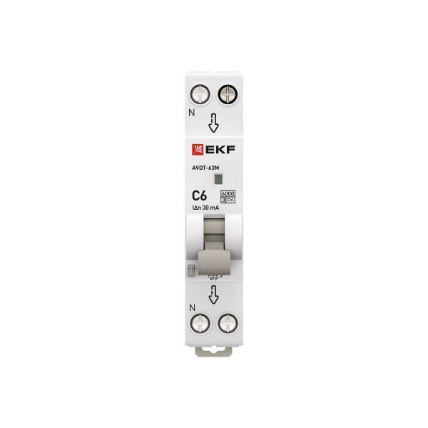 В нашем магазине «Главэлектрика» в Ельце, вы можете приобрести товар: «Автоматический выключатель дифференциального тока АВДТ-63М 1P+N 18мм 6А характеристика C 30мА тип A электронный 6кА PROXIMA EKF» с доставкой по г. Елец.
