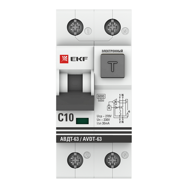ОБНОВЛЕНИЕ ЛИНЕЙКИ PROXIMA Артикул аналог: D63N26EA10C30 Автоматический выключатель дифференциального тока АВДТ-63 EKF PROxima представляет аппарат, сочетающий функции автоматического выключателя с электромеханическим или электронным УЗО. При обнаружении автоматическим выключателем в защищаемом участке сети тока утечки (повреждения) на землю или сверхтока (тока перегрузки или короткого замыкания) происходит срабатывание устройства, приводящее к отключению защищаемой сети. Возможна коммутация алюминиевым и медным проводником. Автоматический выключатель дифференциального тока малогабаритный АВДТ-63М EKF PROxima представляет аппарат, сочетающий функции автоматического выключателя с электронным УЗО типа АС в компактном корпусе шириной один модуль. При обнаружении автоматическим выключателем на защищаемом участке сети тока утечки (повреждения) на землю или сверхтока (тока перегрузки или короткого замыкания) происходит срабатывание устройства, приводящее к отключению защищаемой сети. Особое отличие дифференциальных автоматических выключателей EKF с электронным УЗО – в наличии блока защиты от перенапряжения. Возможна коммутация алюминиевым и медным проводом.