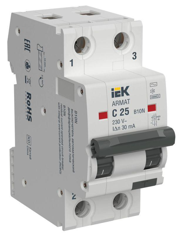 В нашем магазине «Главэлектрика» в Ельце, вы можете приобрести товар: «ARMAT Автоматический выключатель дифференциального тока B10N 2P C25 30мА тип AC IEK» с доставкой по г. Елец.