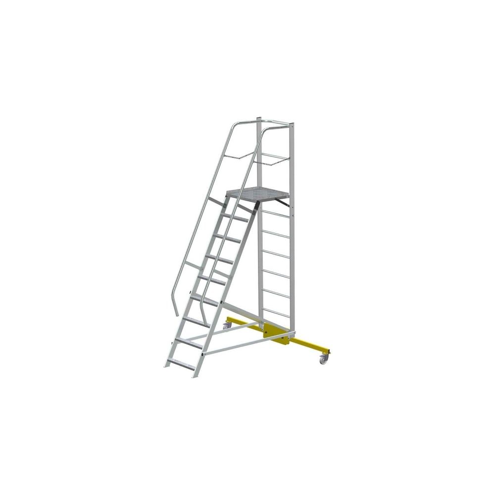 Компактная лестница с платформой MEGAL ЛСПК-2.35 траверса 1.9 м 261123 используется для доступа к оборудованию, расположенному на высоте. Изготовлена из алюминия, который отличается прочностью, небольшим весом и устойчивостью к воздействию коррозии. Безопасность. Лестница оснащена площадкой с трехсторонним ограждением и ступенями глубиной 80 мм для безопасной работы. Складная конструкция и транспортировочные колеса обеспечивают простоту перемещения.